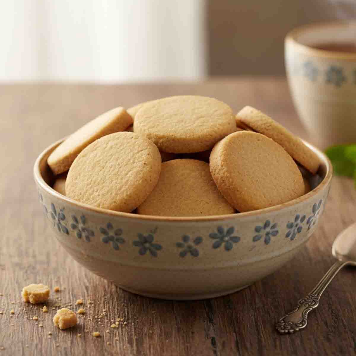 “Enjoy the comforting simplicity of these whole wheat flour-based classic butter cookies, perfectly baked to a delicate crisp and rich golden hue. Each bite delivers a smooth, melt-in-your-mouth texture and a gentle sweetness, making them an ideal pairing with tea, coffee, or milk.